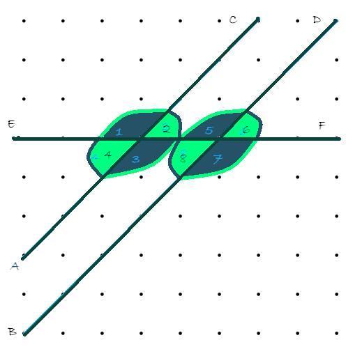 7. Alternate interior angle- Parallel lines that intersect on the inside